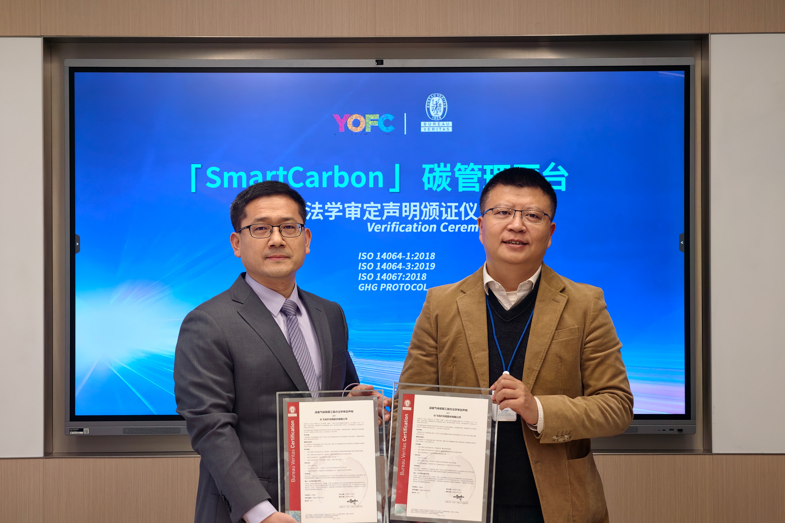 Récemment, la plateforme de gestion carbone SmartCarbon, développée de manière autonome par YOFC, a passé avec succès l’audit du groupe Bureau Veritas, organisme tiers de vérification de renommée internationale. Son module carbone organisationnel et son module carbone produit ont obtenu respectivement des déclarations de validation méthodologique selon les normes ISO14064-1 et ISO14067. Cette reconnaissance marque le fait que YOFC a atteint un niveau international de premier plan en matière de quantification précise et de gestion scientifique des données carbone, jetant ainsi des bases numériques solides pour la transformation verte de l’entreprise. En outre, grâce à ses performances remarquables dans le domaine de la numérisation de la gestion carbone, cette plateforme a également remporté le premier prix du Prix de l’innovation 2025 de l’Association chinoise pour la conservation de l’énergie — Prix du progrès scientifique et technologique pour les économies d’énergie et la réduction des émissions (catégorie neutralité carbone), devenant ainsi une référence du développement vert dans le secteur.